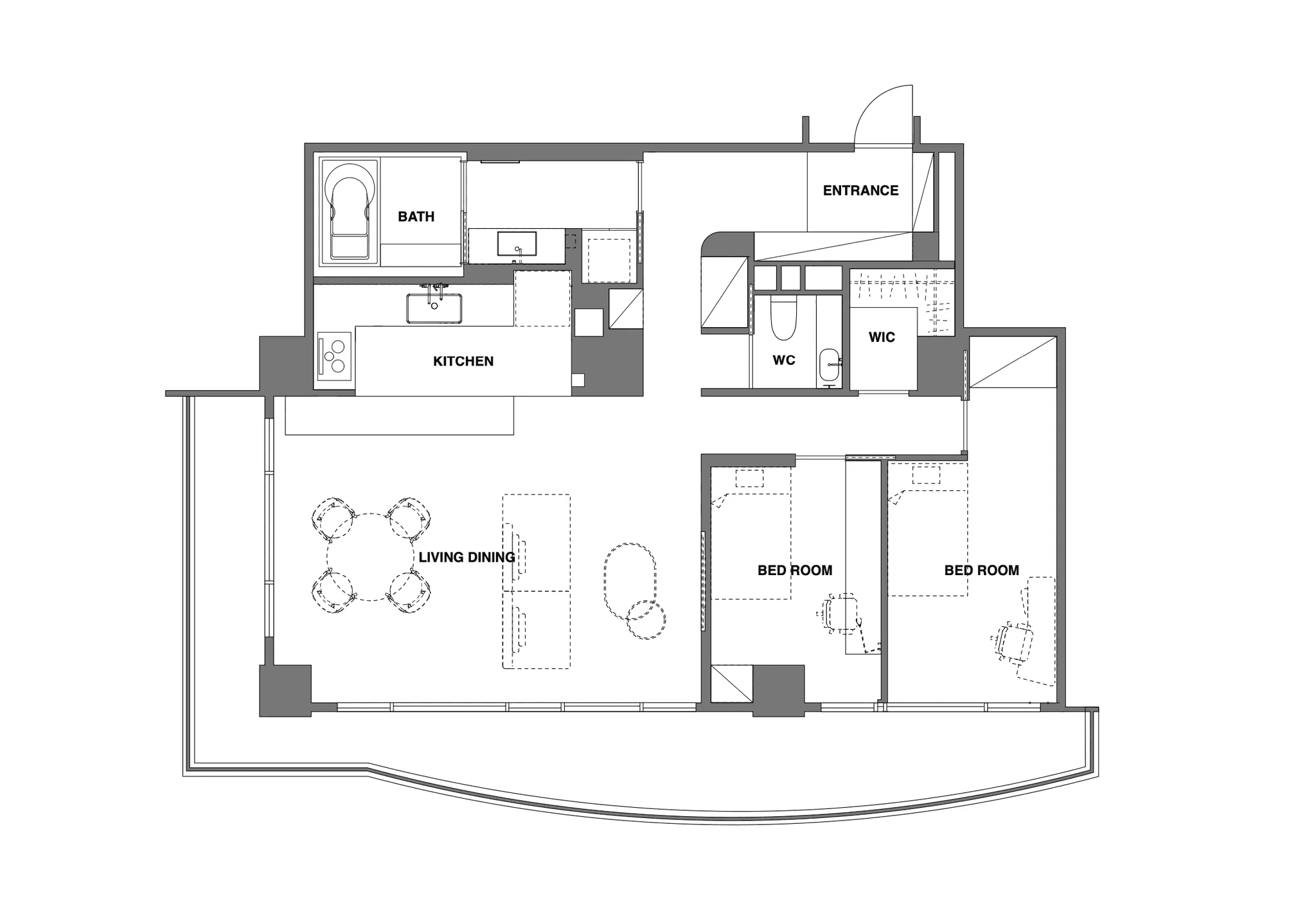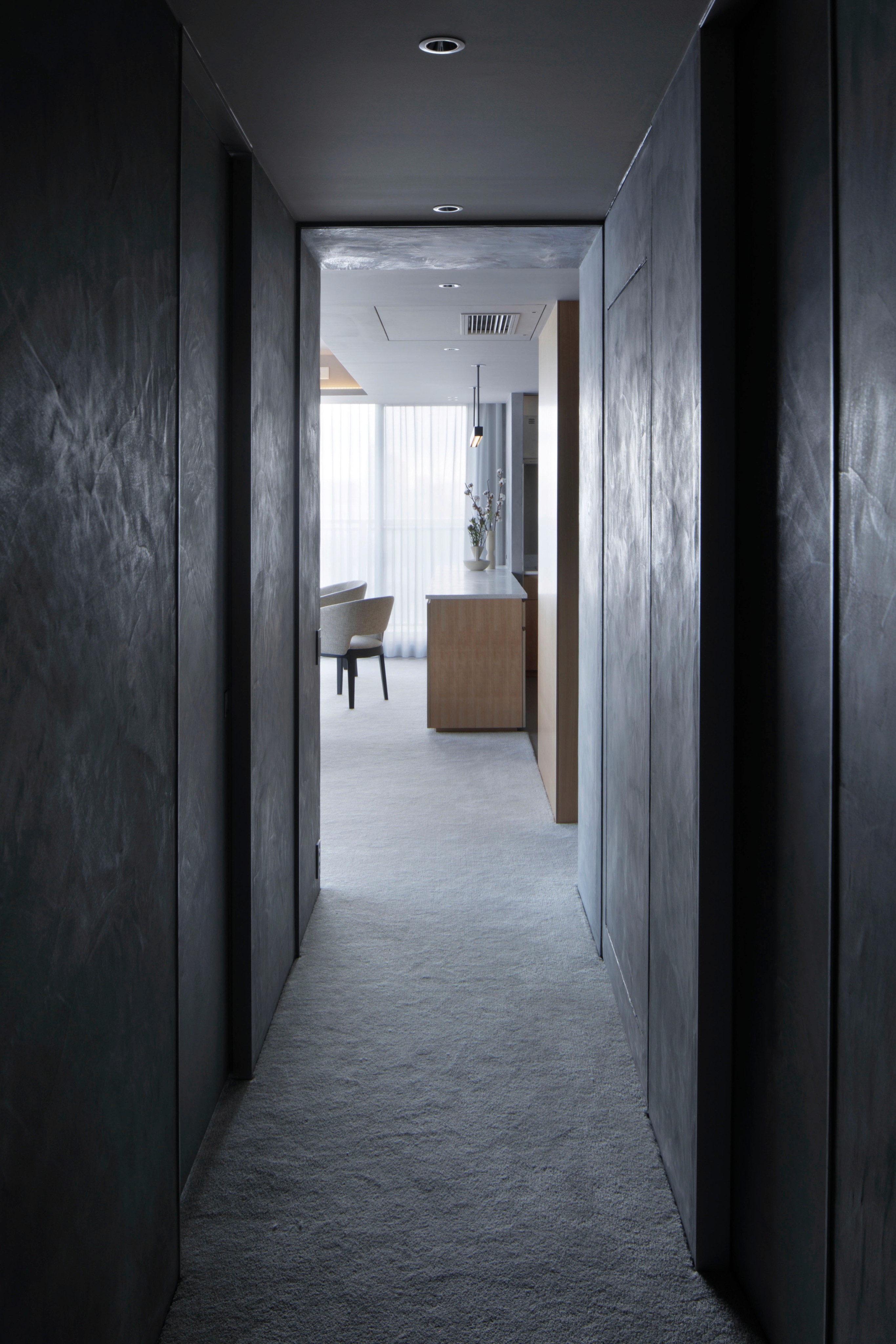 この住まいのコンセプトは、「趣味に没頭できる心地よい空間」を実現することにあります。派手さを排除し、落ち着いた大人の雰囲気を持つホテルライクな設えに仕上げました。素材は手触りの良さを重視し、モールテックスやビールストーンを採用。使うほどに味わいが深まり、愛着の湧く質感を追求しました。動線は自然な広がりを意識し、リラックスできる空間設計を心がけました。日常の中で特別な時間を感じられる、シンプルで洗練された住まいです。